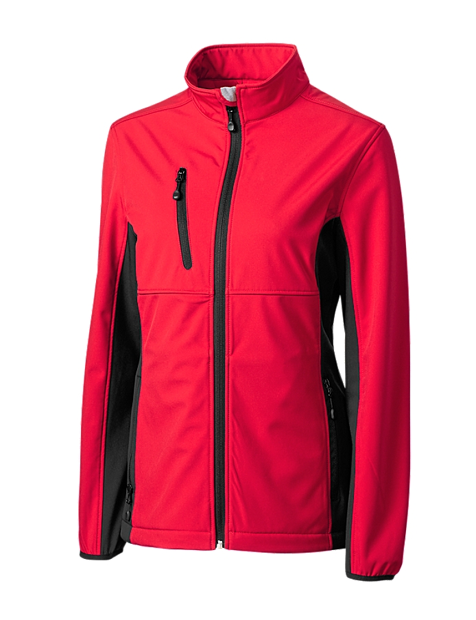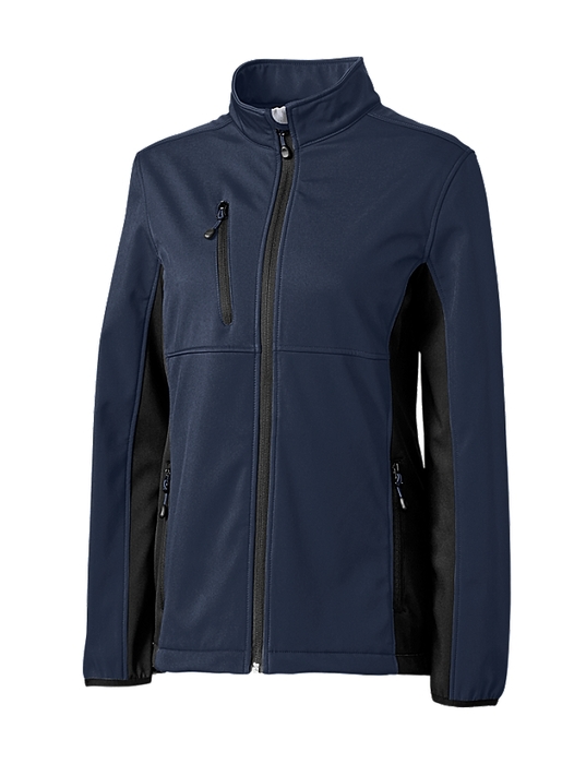 Stay warm and look stylish with this microfleece-lined colorblock softshell. Made from breathable, 96% polyester, 4% spandex plain weave softshell fabric that is waterproof to 1,000mm. The Narvik features reverse coil zippers at front center and along the side pockets. Elasticized cuffs, an angled zip chest pocket, and locker loop finish the look.