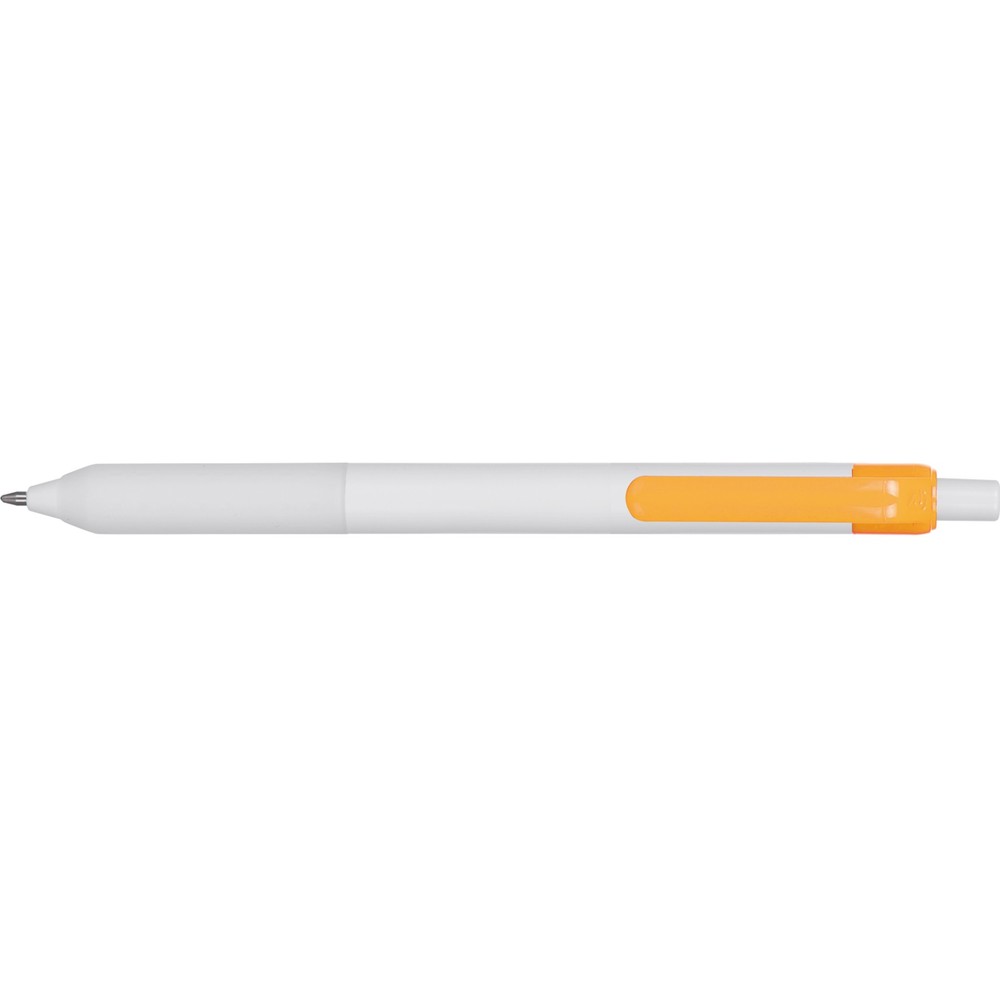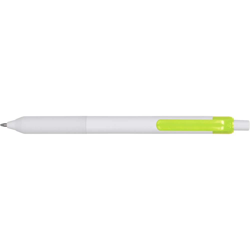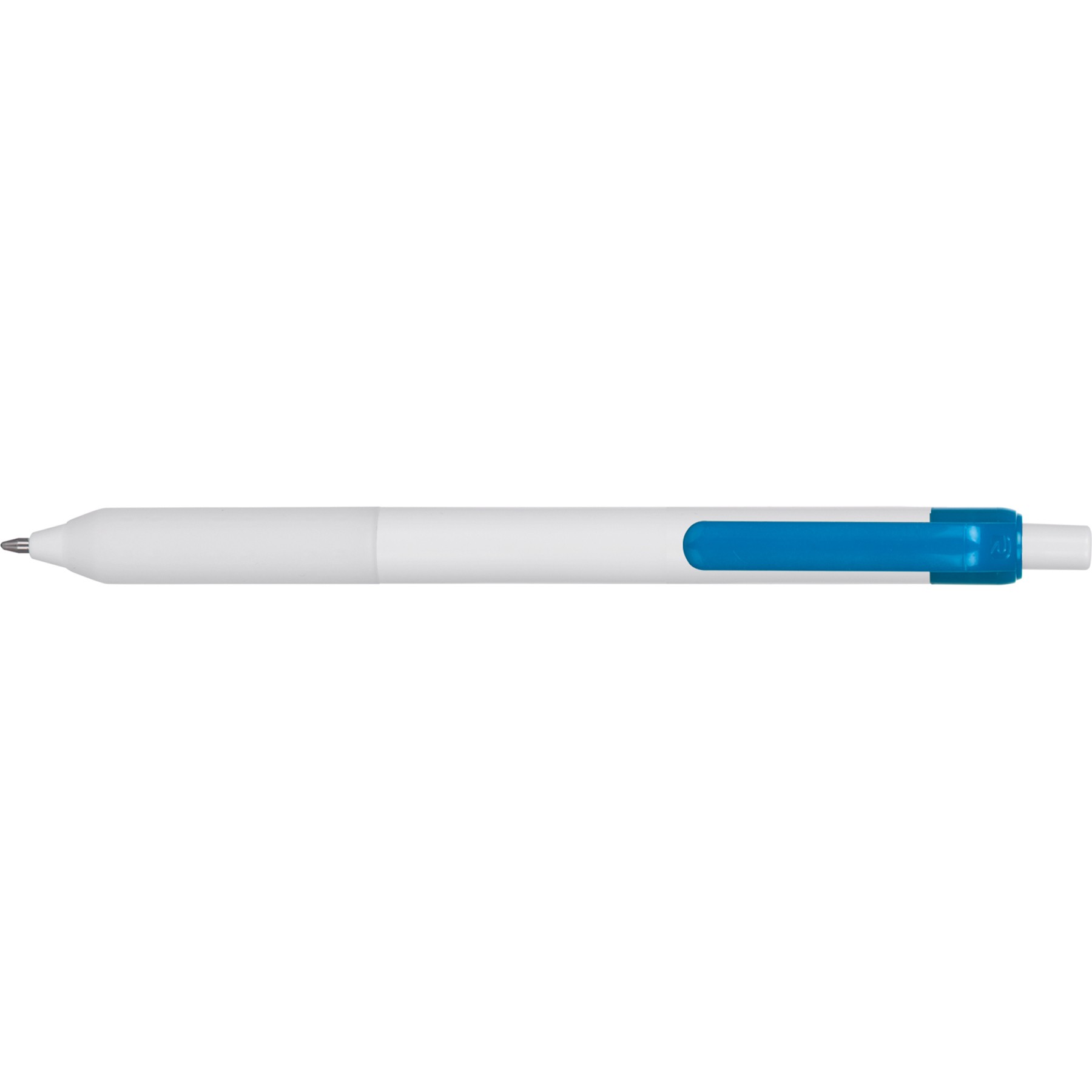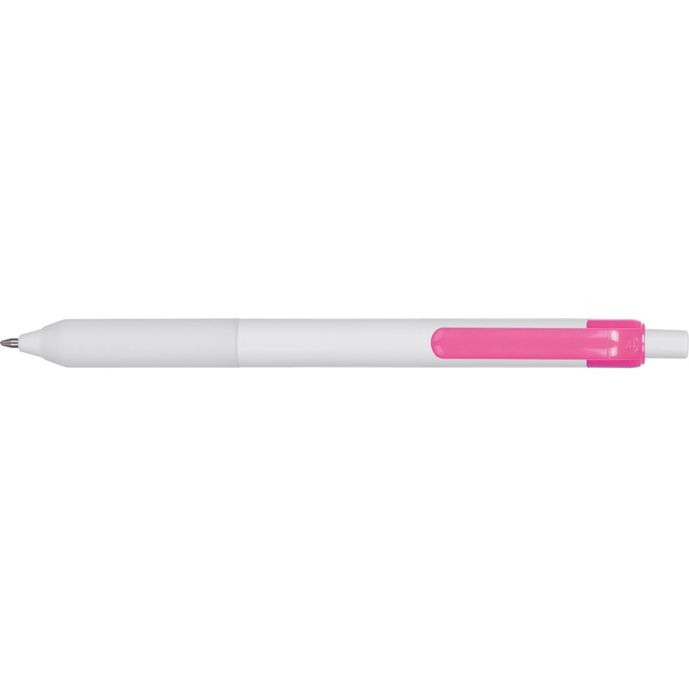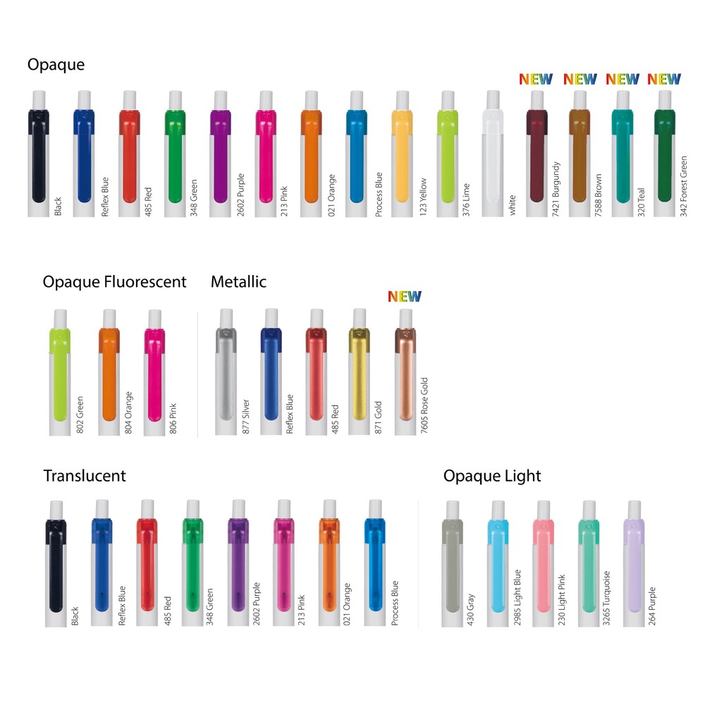 Retractable style. Extra-large 270 wraparound imprint (no extra charge). Secure-Rite, German anti-fraud ink in your choice of blue or black. Choose from 36 ready-to-ship clip colors in opaque, translucent, metallic, fluorescent, and pastel options. Co-molded soft grip goes all the way to the tip for comfortable writing.