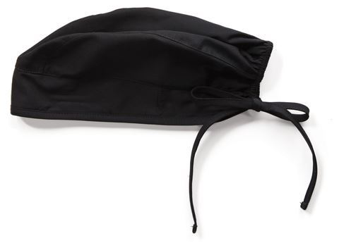 This adjustable, tie-back scrub hat features a terry cloth sweatband and contoured seaming with back elastic for better fit.