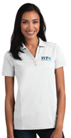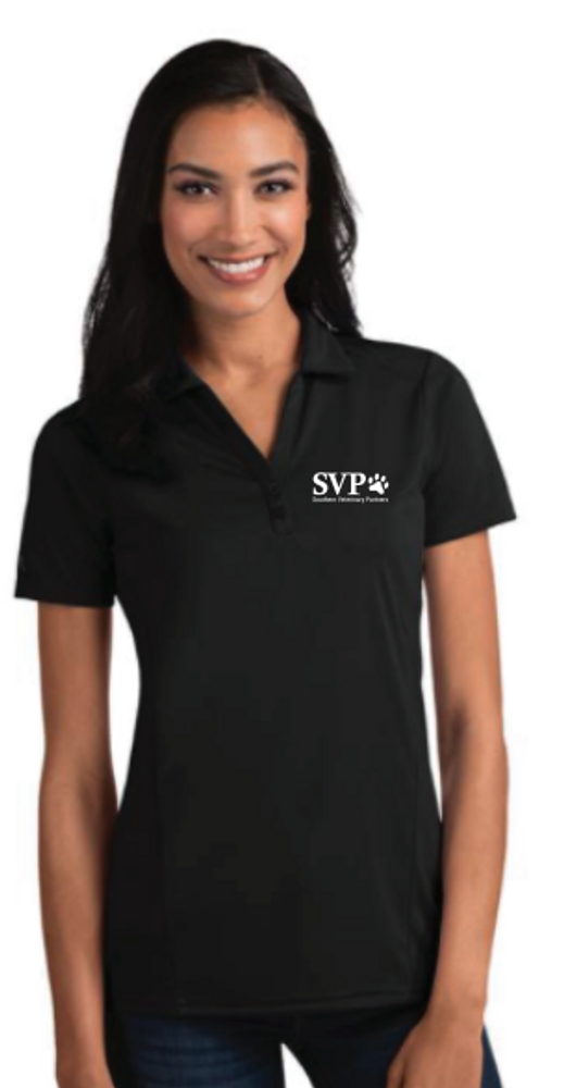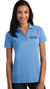 100% polyester Desert DryTM moisture wicking interlock knit solid short sleeve polo with self-fabric collar, 2-button “Y”placket, open cuff and princess seams. Antigua triangle patch at right sleeve. UPF protection 50+ sun protection.